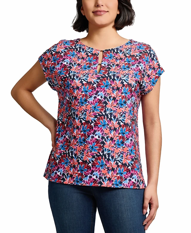 Jones New York Women's Floral-Print Cap-Sleeve Top