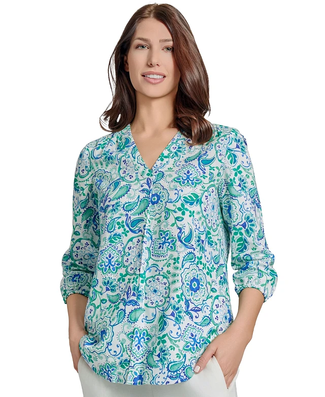 Jones New York Women's Paisley-Print Linen-Blend Tunic