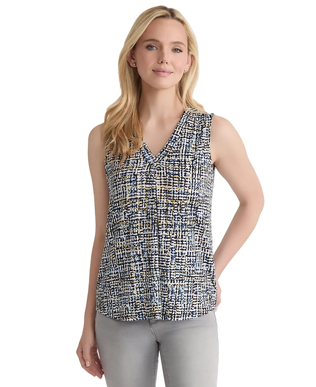 Jones New York Women's Printed Pleat-Front V-Neck Sleeveless Top