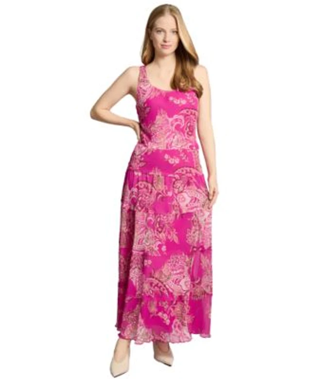Jones New York Womens Printed Sleeveless Tiered Chiffon Dress Pxs Xl