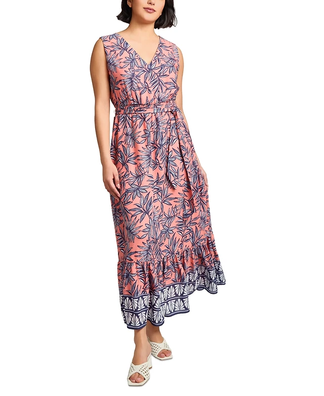 Jones New York Women's Printed Tie-Waist Tiered Maxi Dress