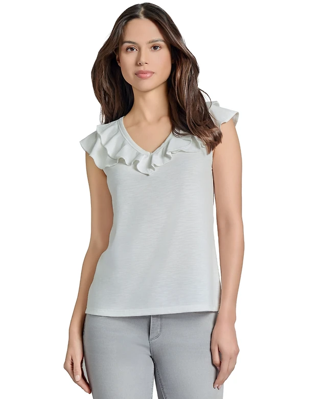 Jones New York Women's Ruffled V-Neck Top