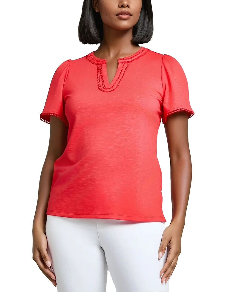 Jones New York Women's Split Neck Trim Top