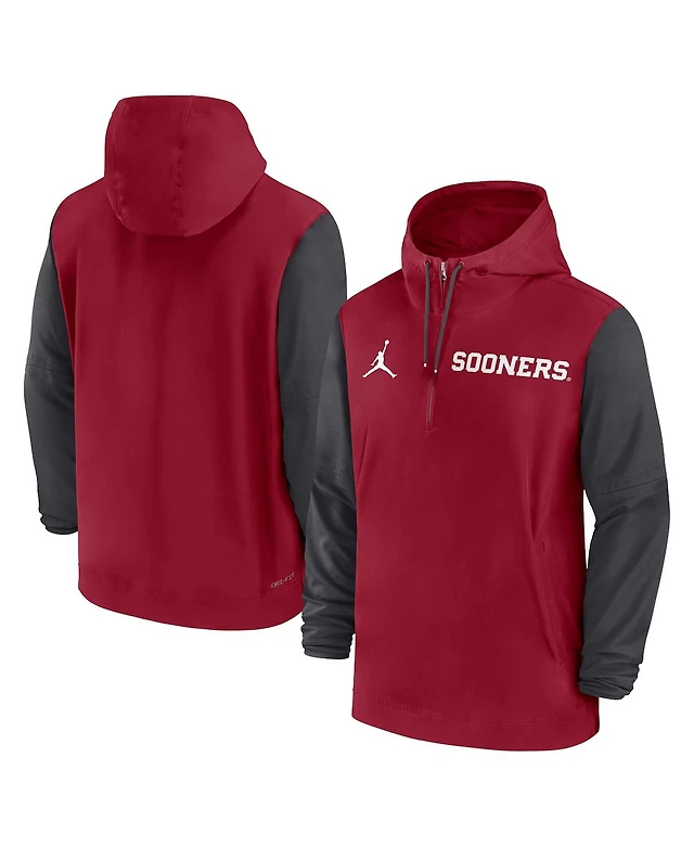 Jordan Men's Crimson Oklahoma Sooners 2024 Sideline Pregame Player Half-Zip Hoodie