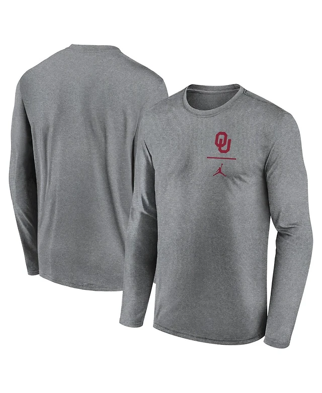 Jordan Men's Heather Gray Oklahoma Sooners Primary Stack Legend Performance Long Sleeve T-Shirt