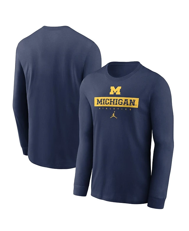 Jordan Men's Navy Michigan Wolverines Sideline Hoodie Performance Long Sleeve T-Shirt