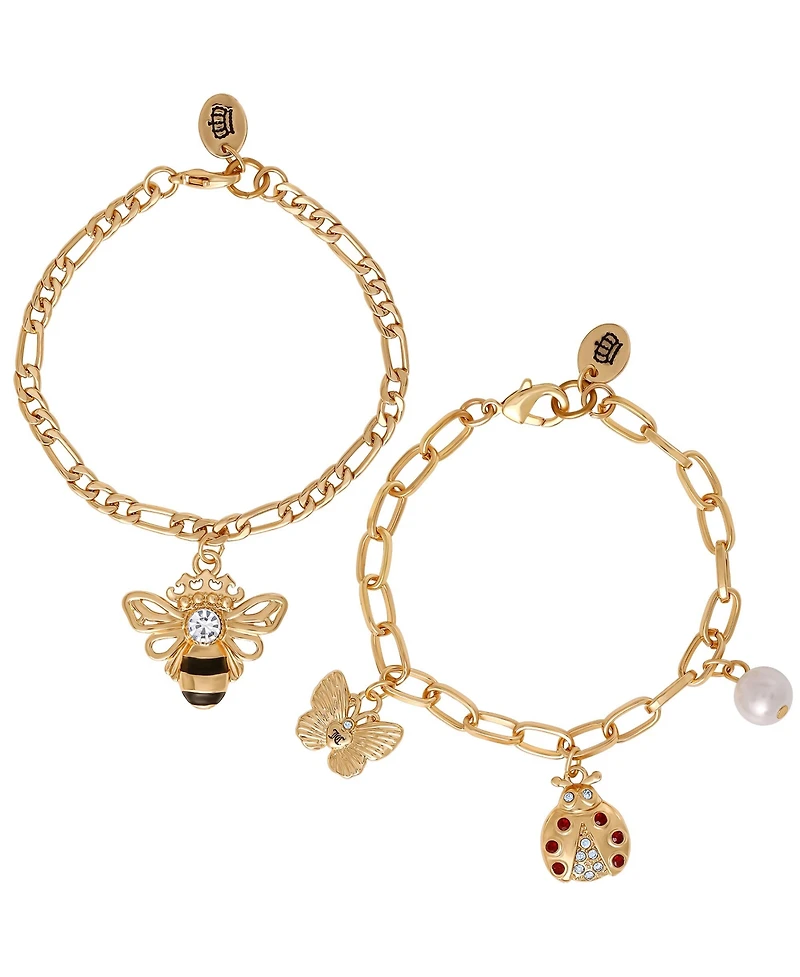Juicy Couture Charm Bracelet Duo - Ladybug & Bee - Gold Tone