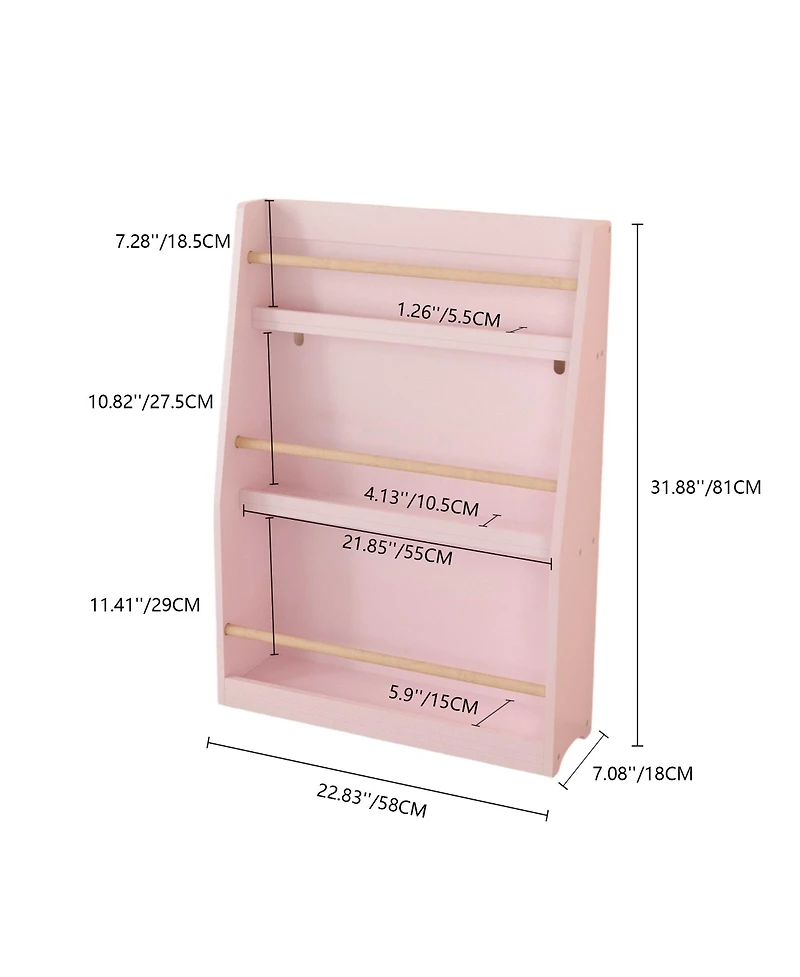 Ideal for children aged 3 and up, this charming pink kids book rack blends functionality with a child-friendly design, making it a perfect addition to your toddler s bedroom, playroom, nursery, or living room. Crafted from durable Mdf and solid pine wood, it ensures sturdiness for daily use while being safe for little ones. Unlike traditional bookcases that stack books out of sight, its open display lets kids easily see and grab their favorite board books independently, sparking early reading interest. Beyond fostering a love for reading, it encourages children to develop neat habits—they can organize books and toys on their own without extra storage shelves, keeping their space tidy. Equipped with a tipover restraint device for enhanced safety, the rack supports a total weight of 30kg (5kg per layer), ensuring stable and long-lasting use. The lovely pink finish adds a sweet touch to any decor, and it comes in one package with all assembly parts included for hassle-free setup.
