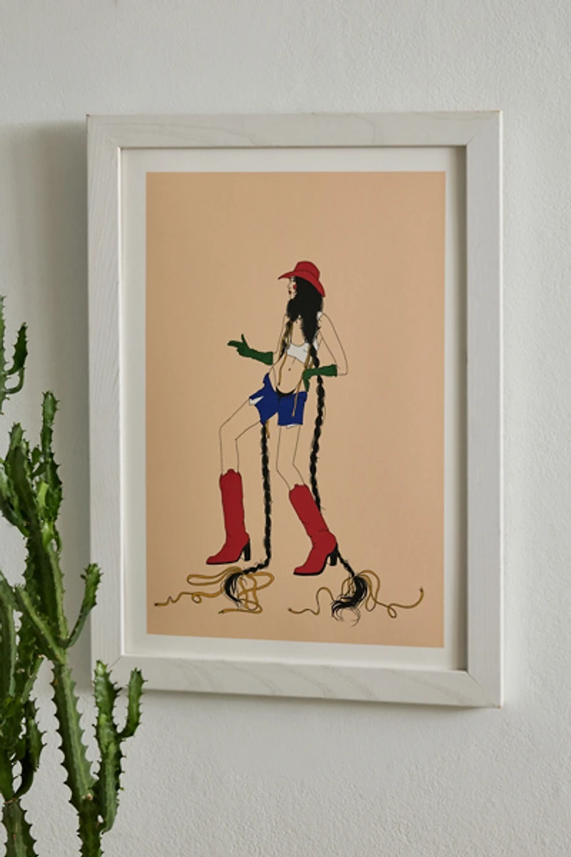Art print by Juliana Kokolari featuring a kitschy Western character. Printed on archival paper made from cotton pressed in Italian mills, this high-quality art print is available in sizes and frames just right for your space. First select your frame (or go frameless), then select your size.