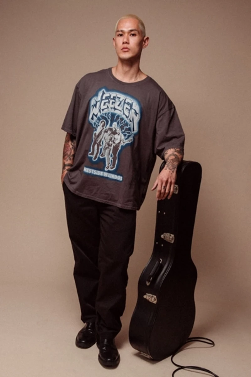 Channel alt rock nostalgia in this Weezer Westside Weirdos oversized tee. Featuring an electrified graphic and vintage washed feel, this relaxed fit shirt delivers effortless edge and all day comfort. Perfect for concerts, casual wear, or repping your favorite band in laid back style.