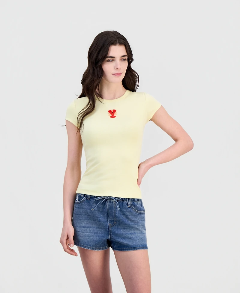 Just Polly Juniors' Beachy Beaded Short-Sleeve T-Shirt
