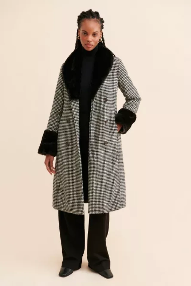 Ellen Tracy Women's Bold Twill Textured Overcoat with Detachable Scarf