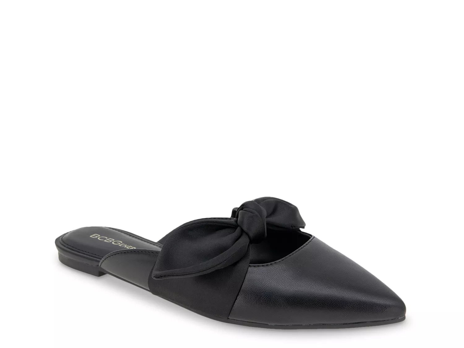 Slip into a sophisticated style with the Kandy mule from BCBGeneration. This trendy pair features a sleek pointed toe, complete with a sweet bow accent.