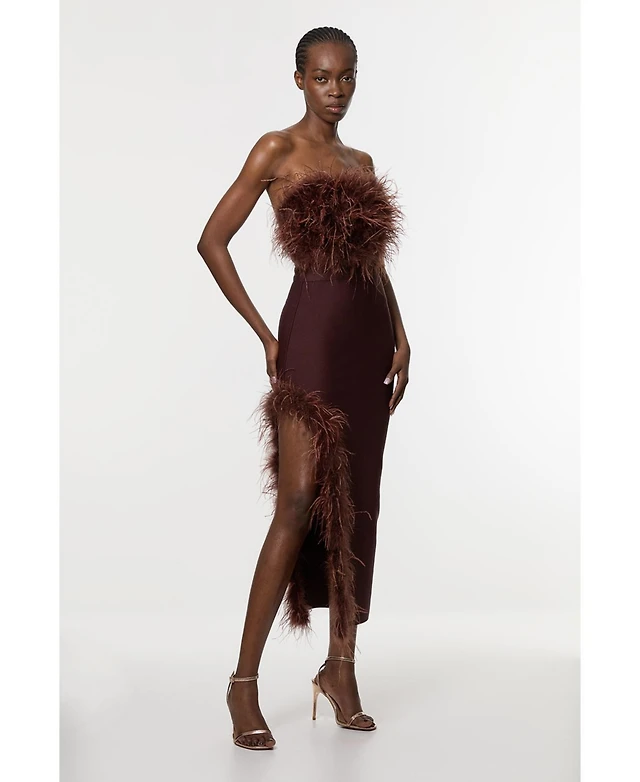 Karen Millen Women's Feather Detail Knit Midi Dress