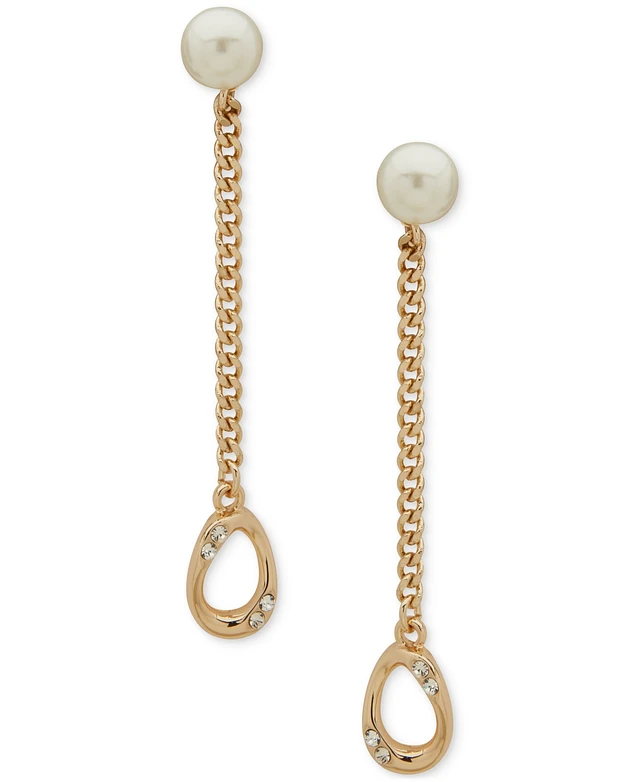 Karl Lagerfeld Paris Gold-Tone Pave & Imitation Pearl Curb Chain Linear Drop Earrings