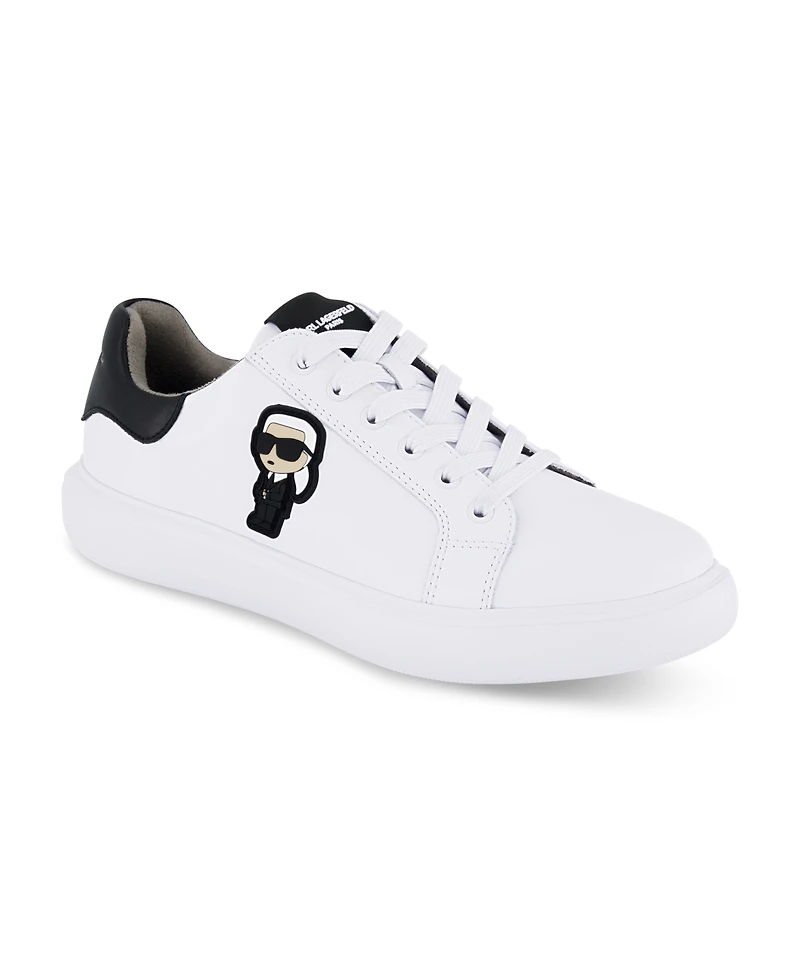 A leather sneaker featuring a Karl patch all on a lightweight rubber sole from Karl Lagerfeld Paris.