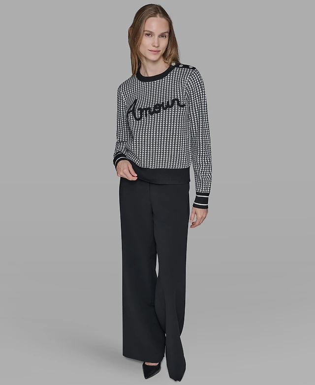Karl Lagerfeld Paris Petite Crewneck Long-Sleeve Knit Sweater