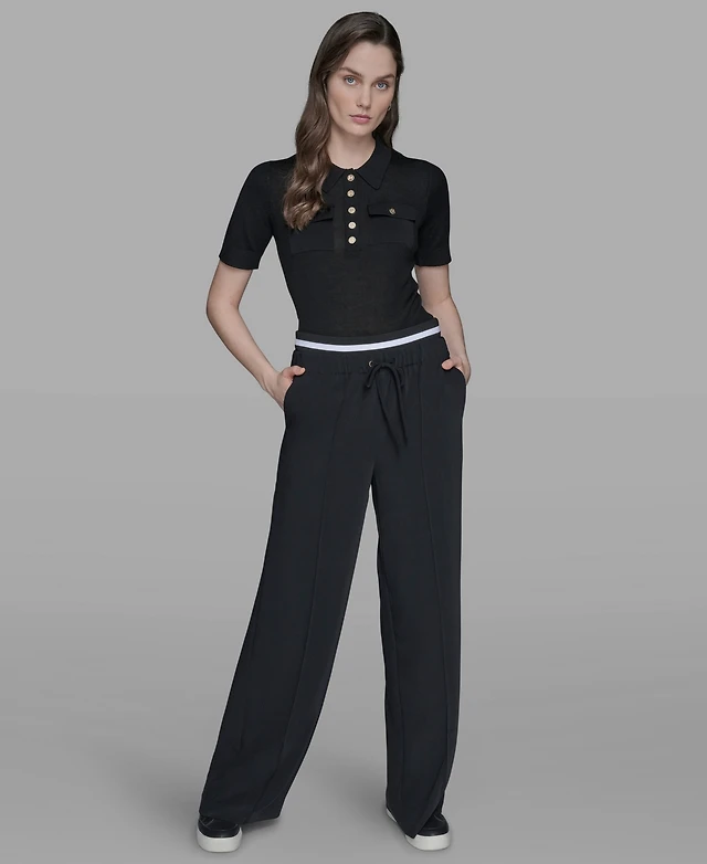 Karl Lagerfeld Paris Women's Side-Button Wide-Leg Ponte Pants
