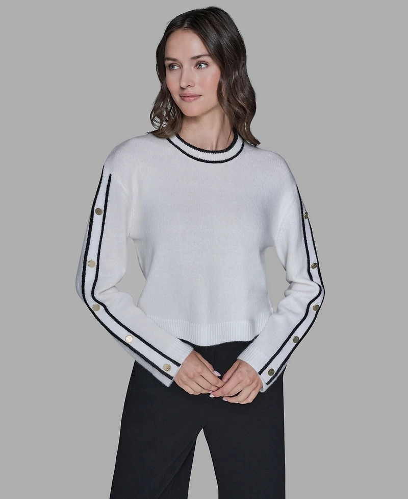 Karl Lagerfeld Paris Women's Contrast Trim Pull-On Sweater