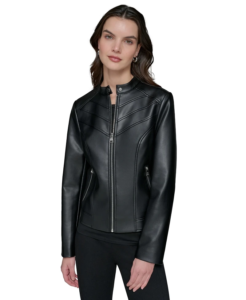 Karl Lagerfeld Paris Women's Fitted Mock-Neck Faux-Leather Jacket
