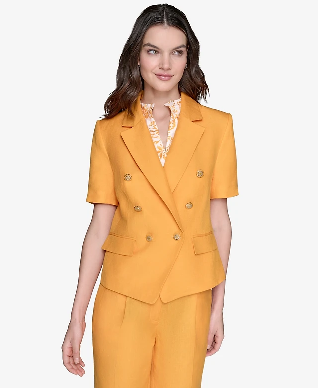 Karl Lagerfeld Paris Women's Linen-Blend Short-Sleeve Double-Breasted Jacket