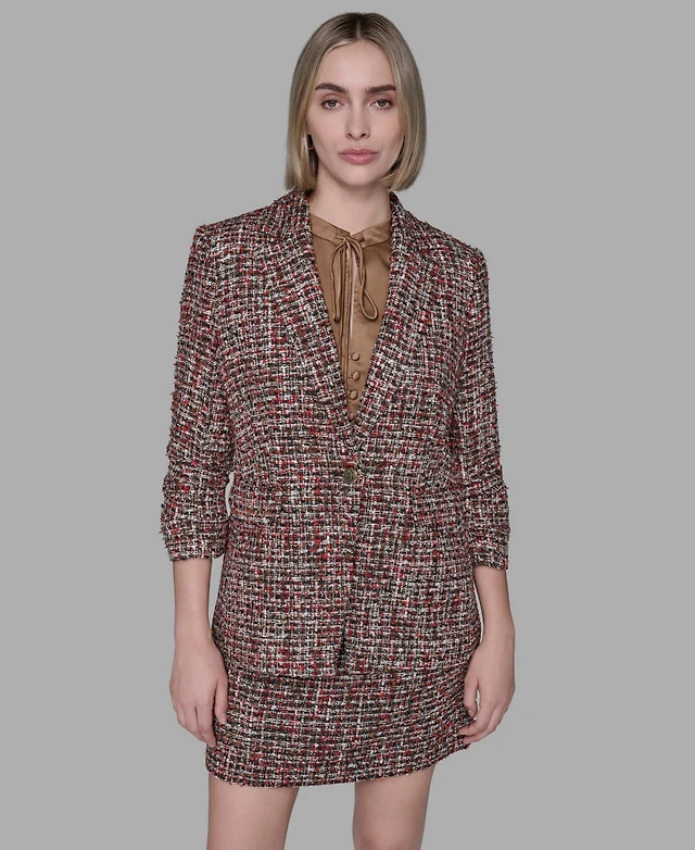 Karl Lagerfeld Paris Women's Cropped Long-Sleeve Tweed Jacket