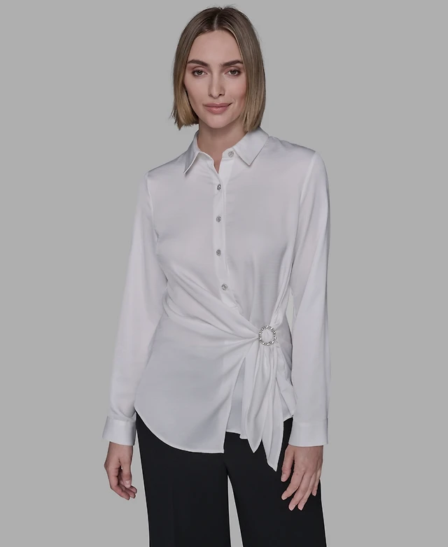Karl Lagerfeld Paris Women's Collared Long-Sleeve Blouse