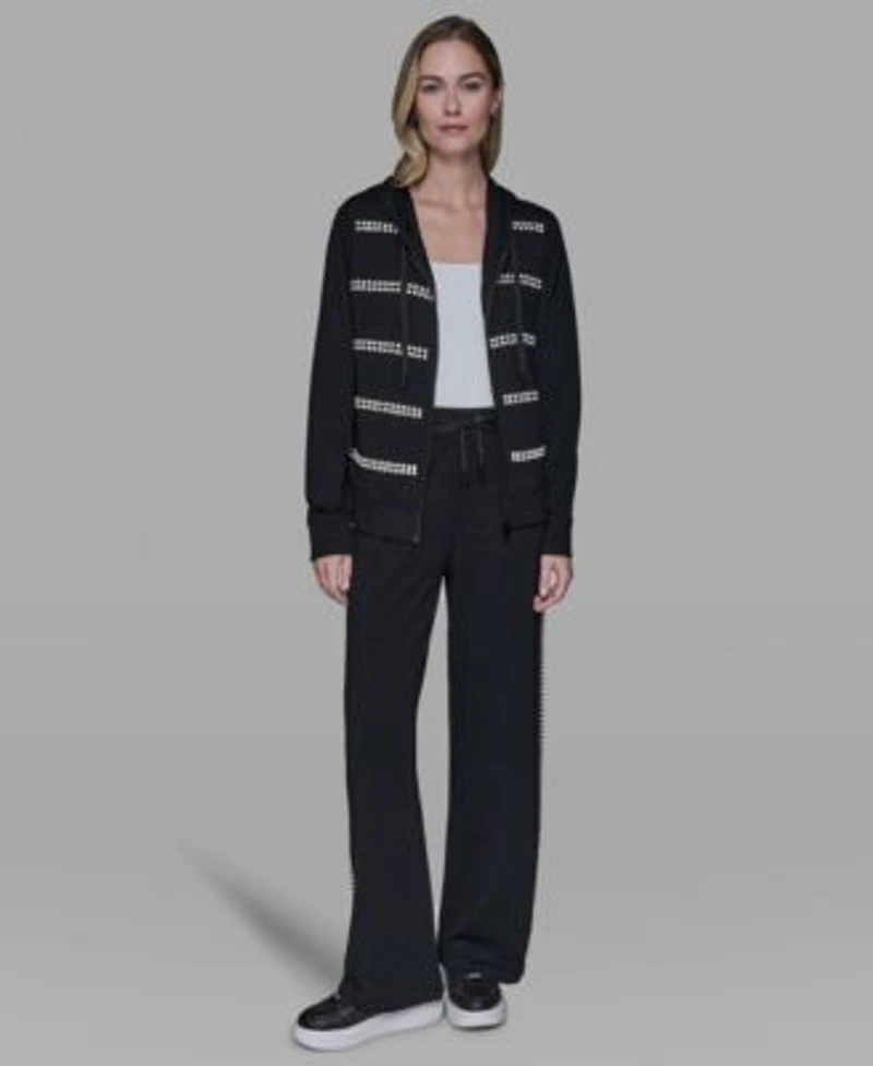 Karl Lagerfeld Paris Womens Pearl Front Zipper Tracksuit Jacket Trim Mid Rise Track Pants