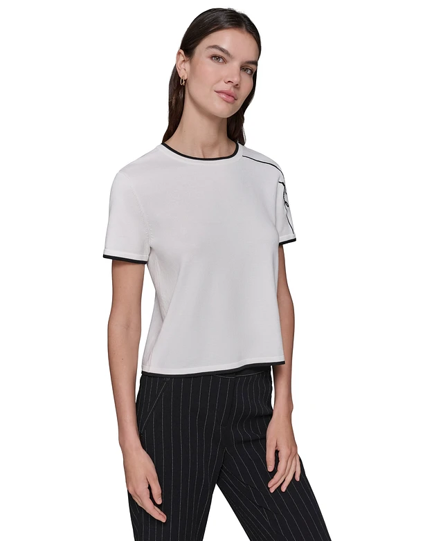 Karl Lagerfeld Paris Women's Script-Logo Short-Sleeve Sweater