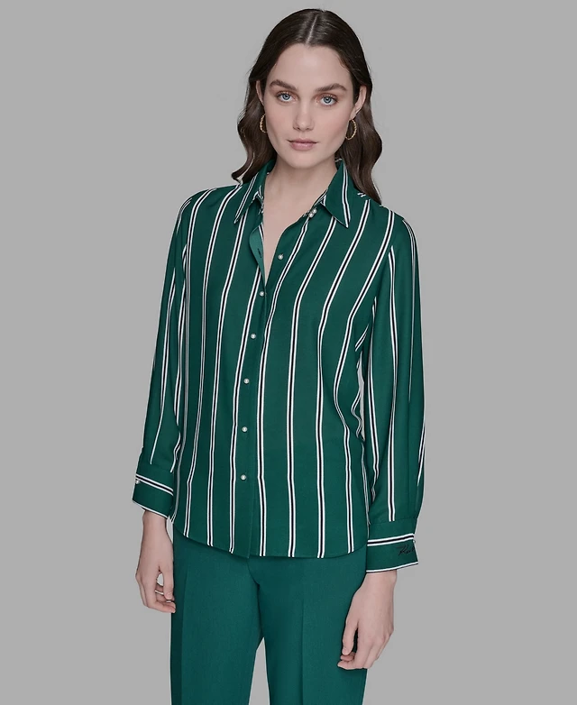 Karl Lagerfeld Paris Women's Striped Faux-Pearl Shirt