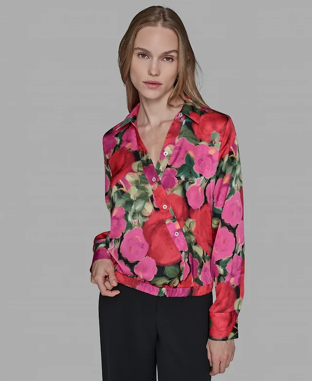 Karl Lagerfeld Paris Women's V-Neck Floral Print Top