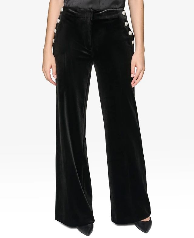 Karl Lagerfeld Paris Women's Velvet Rhinestone-Button Pants