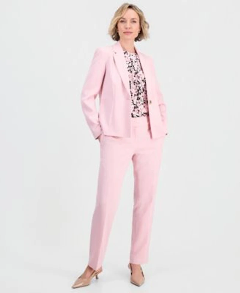 Kasper Womens Stretch Crepe One Button Jacket Floral Pleat Front Cap Sleeve Top Stretch Crepe Mid Rise Pants in Bloomington, MN