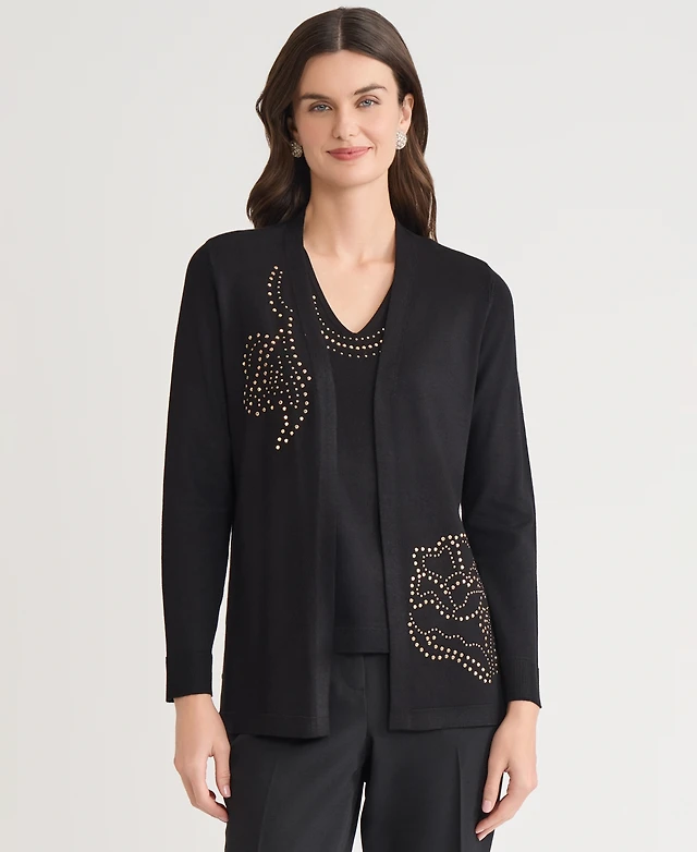 Kasper Women's Stud-Embellished Kissing-Front Long-Sleeve Cardigan