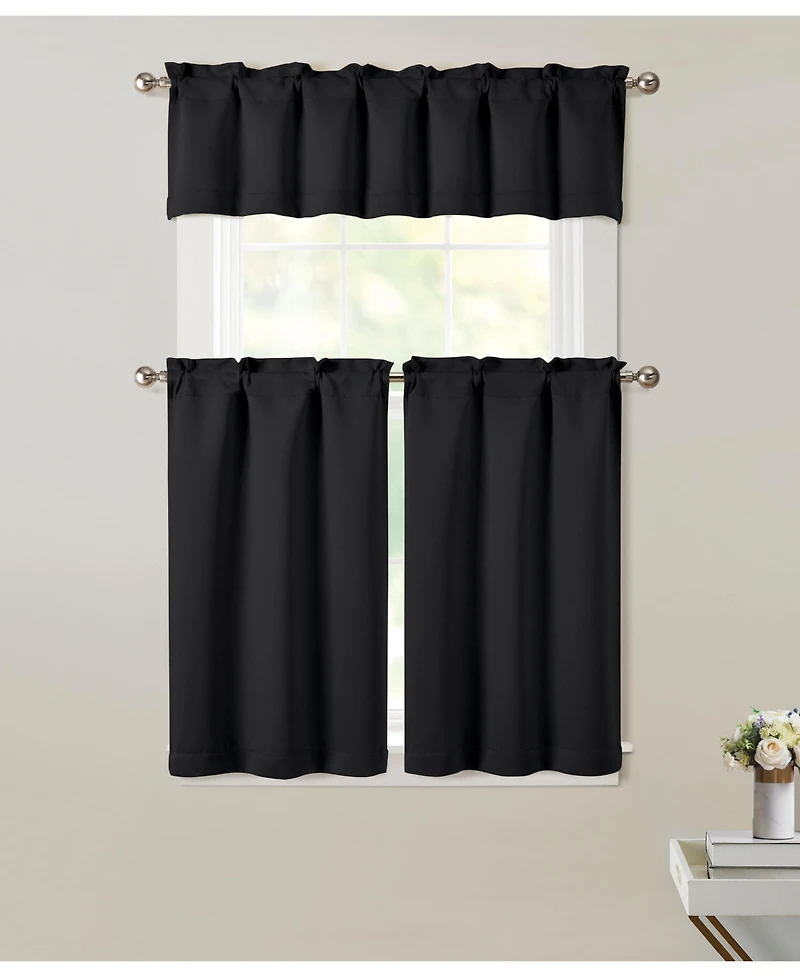 Kate Aurora 3 Piece Room Darkening Rod Pocket Cafe Kitchen Curtain Tier & Valance Set