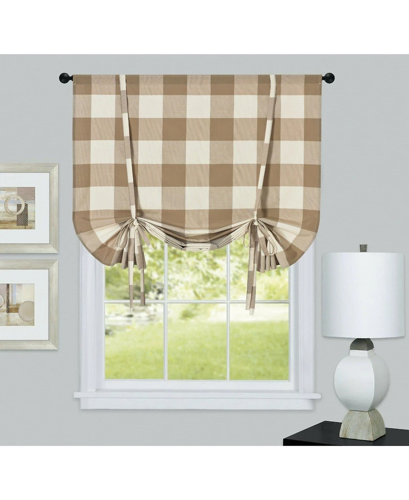 Kate Aurora Country Farmhouse Rod Pocket Buffalo Plaid Gingham Tie Up Window Curtain Panel