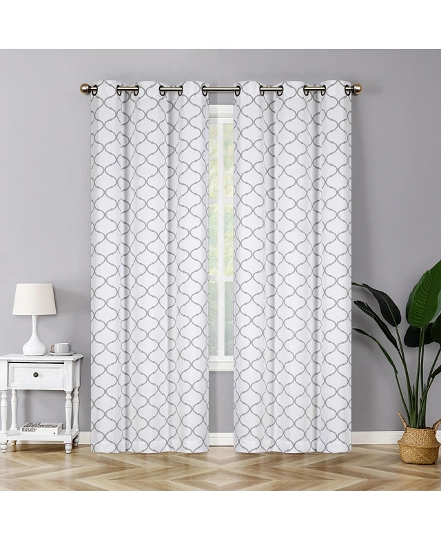 Kate Aurora Modern Elements 2 Pack Quatrefoil Lattice Poly Cotton Curtain Panels - Gray