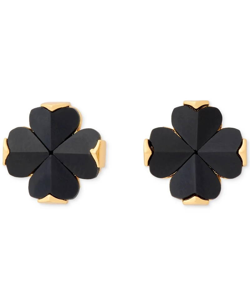 Display a floral motif with these Spade Flower studs from kate spade new york, featuring a black epoxy stone design. Cubic zirconia adds a touch of sparkle to the iconic shape. A secure butterfly clutch offers comfortable all-day wear.