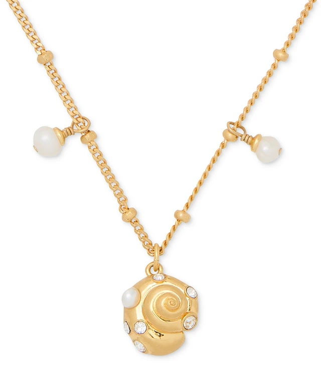 Kate Spade New York Gold-Tone Pave & Freshwater & Imitation Pearl Shell Pendant Necklace, 16" + 3" extender