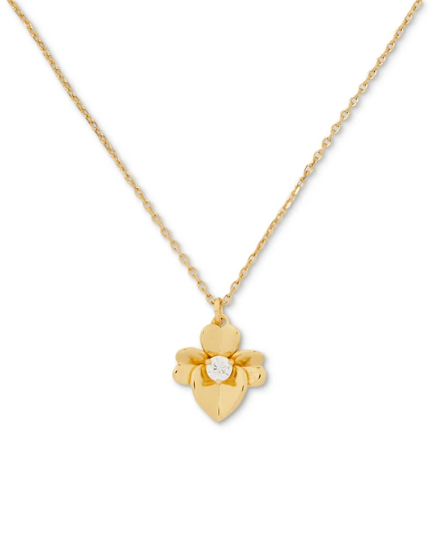 kate spade new york Gold-Tone Precious Pansy Mini Pendant Necklace, 16" + 3" extender