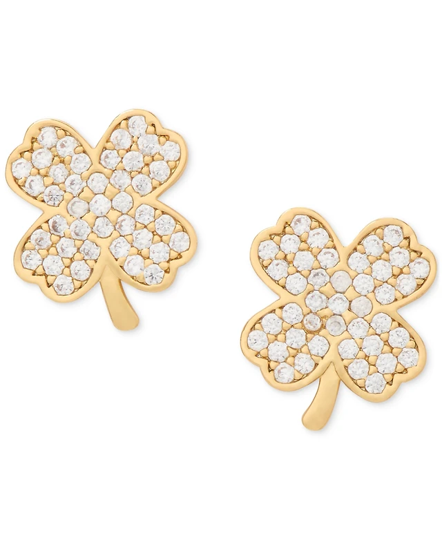 Kate Spade New York Lucky Charm Gold-Tone Pave Crystal Clover Stud Earrings