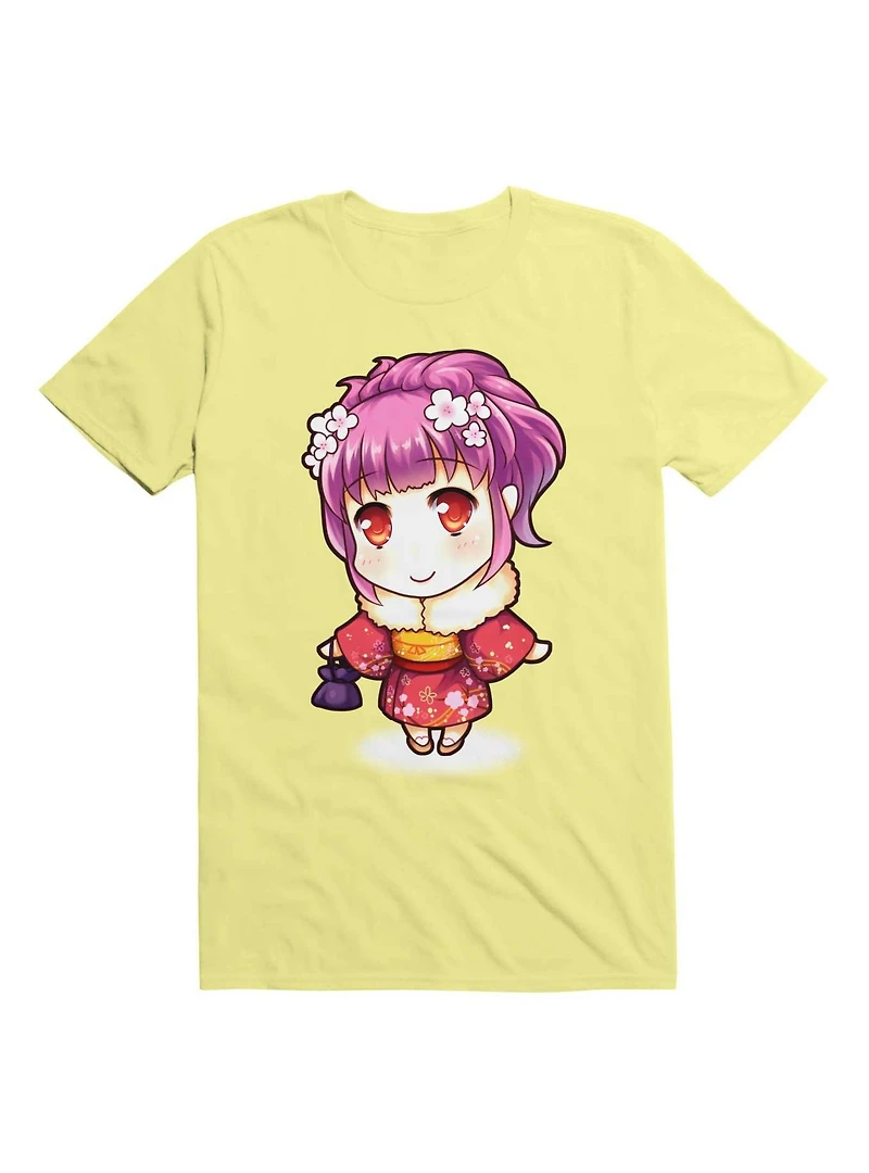 Kawaii Pink Haired Girl Kimono T-Shirt
