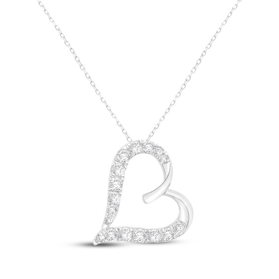 KAY Lab-Grown Diamonds Tilted Heart Necklace 1 ct tw 10K White Gold 18"