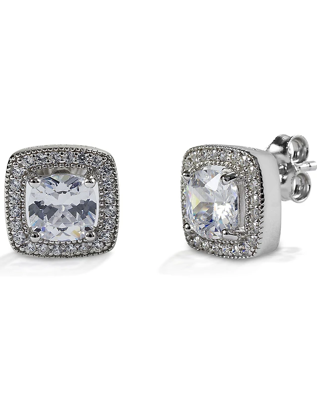 Kelly Herd Women's Square Bezel Set Pave Earrings