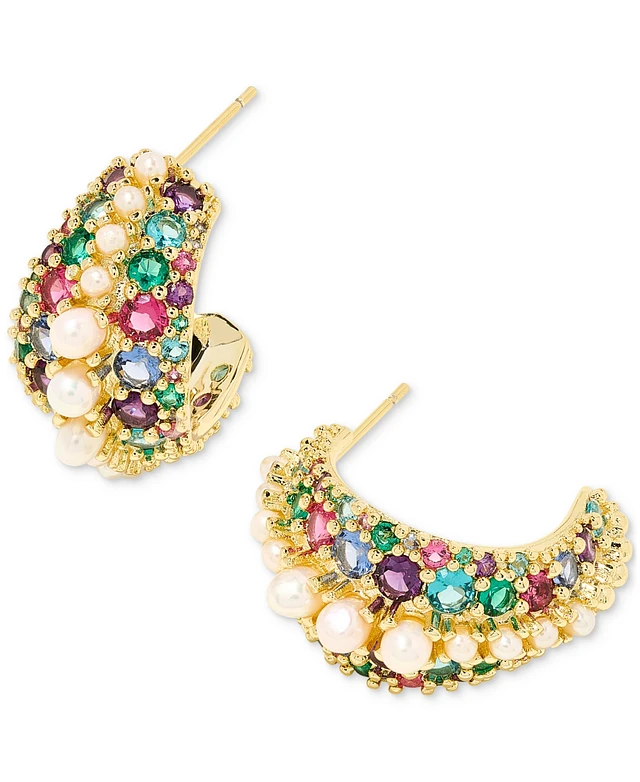 Kendra Scott Cultured Freshwater Pearl (2mm) & Crystal Pave Small Half Hoop Earrings