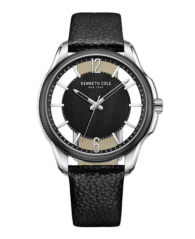 Kenneth Cole New York Men's Transparency Dial Black Genuine Leather Strap Watch 42mm