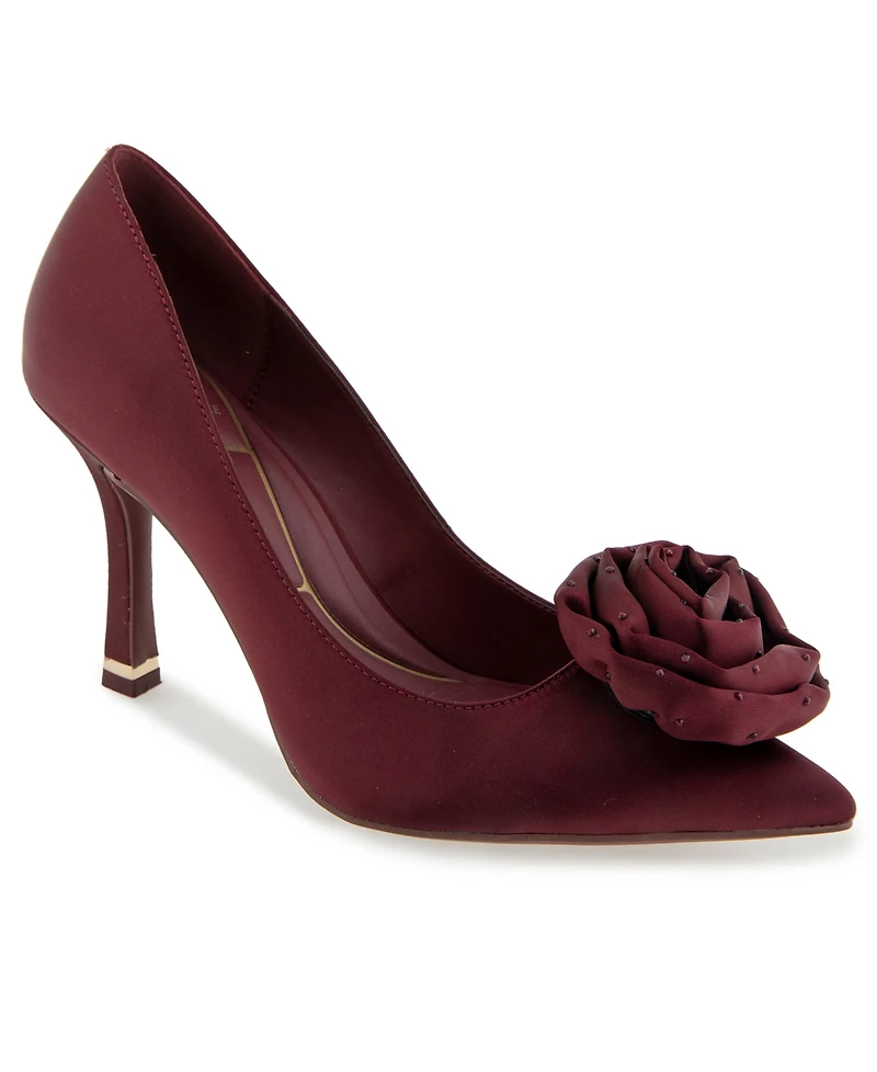 The Kenneth Cole Romi Rosette will have you turning heads when you walk into the room. This statement pump features an oversized rosette with micro jewels.