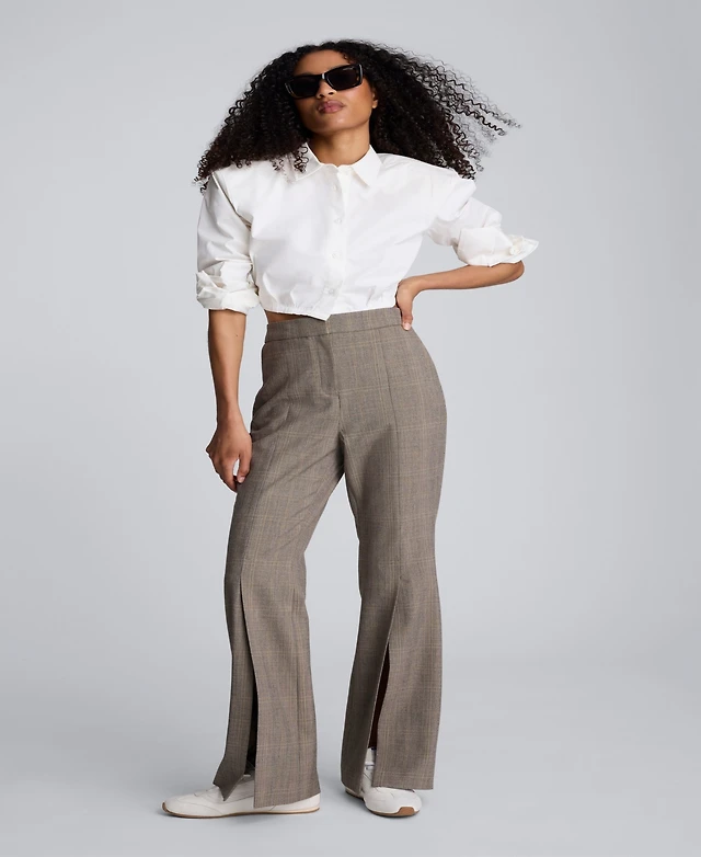 Kenneth Cole Women's Plaid Fly Front Flare Pants