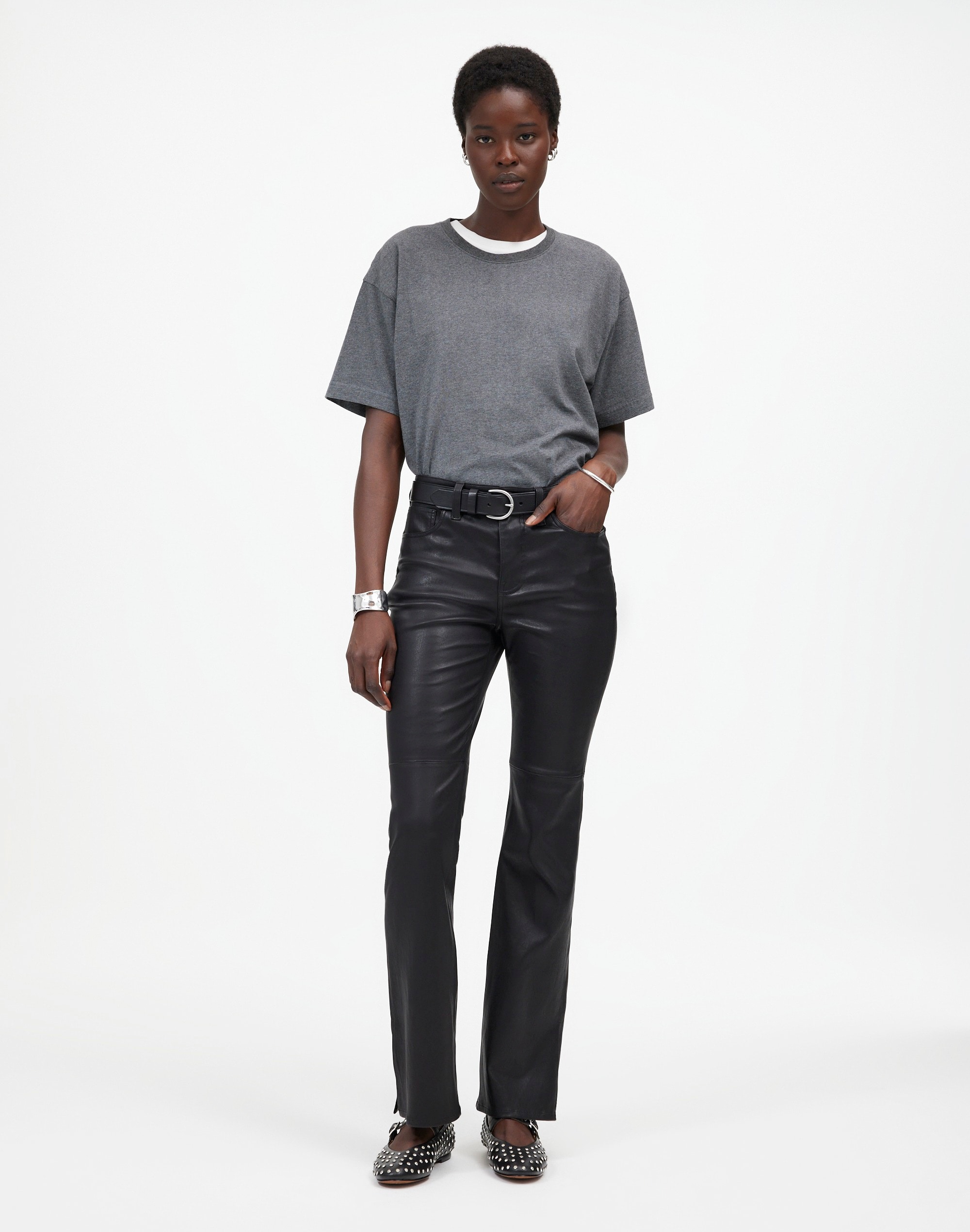 A dressy take on our universally flattering best-selling jeans, these pants have a kicked-out full-length flare leg and the holds-you-in sorcery of our Magic Pockets™ in front. Coming in smooth leather, they're finished with slit side seams and clean hems.