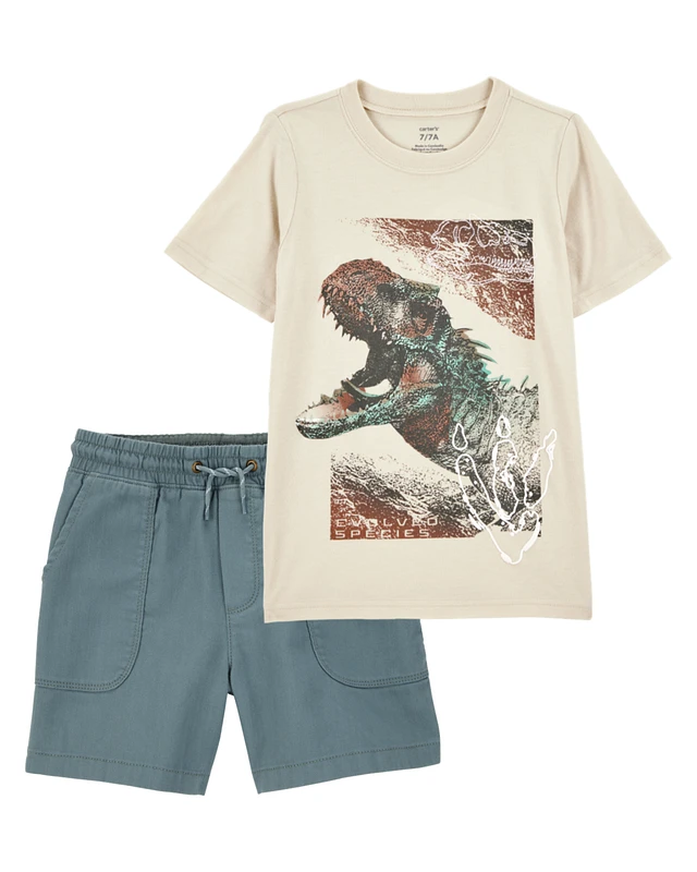 Kid 2-Piece Dinosaur Tee & Shorts Outfit Set